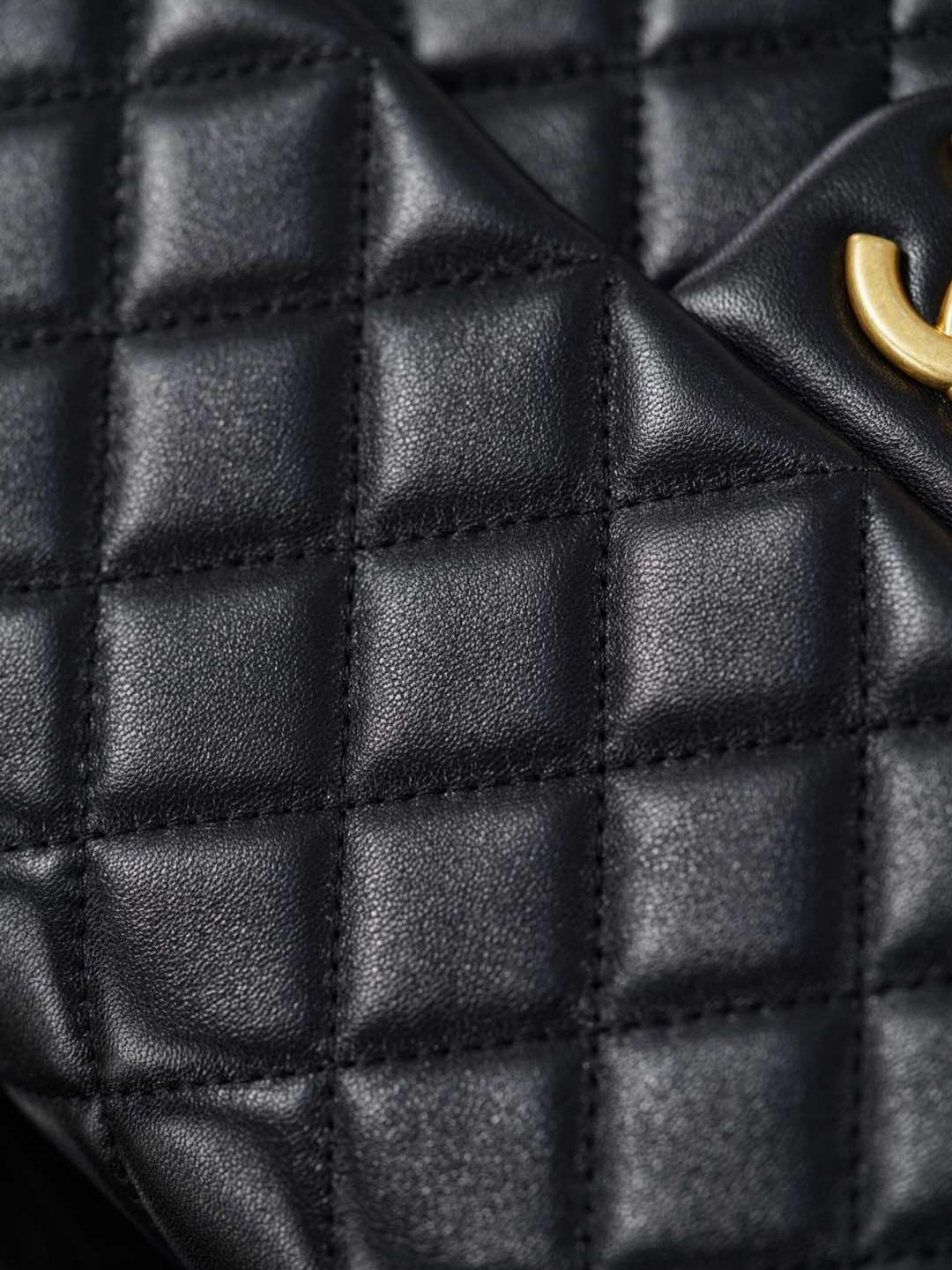 皮質表面滑順如棉花糖般細膩,摸起來有一種微微回彈的柔軟感。內襯為奢華金色全皮設計,金屬光澤與外層黑皮相互呼應,展現低調卻極致的高貴氣息。