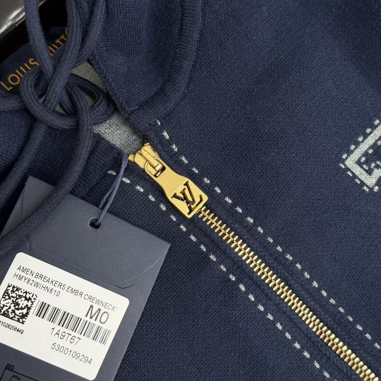 這不僅是一件休閒的外套,更是一場關於針織技術的實驗。透過極其複雜的雙面添紗工藝,讓胸前的 Logo 與花紋呈現出飽滿的凹凸立體感,打破了傳統平織面料的單調,賦予單品如同建築般的視覺層次。