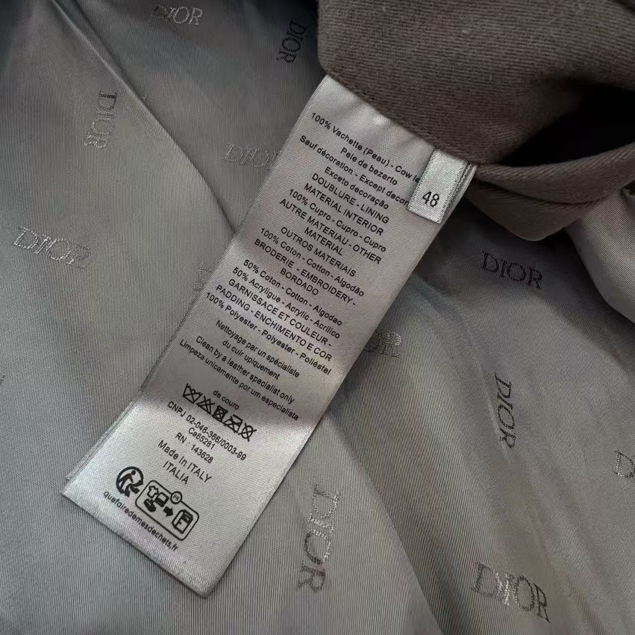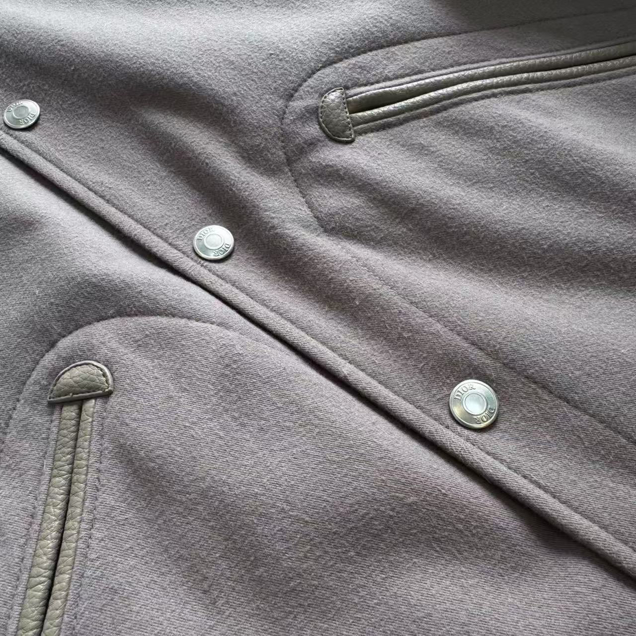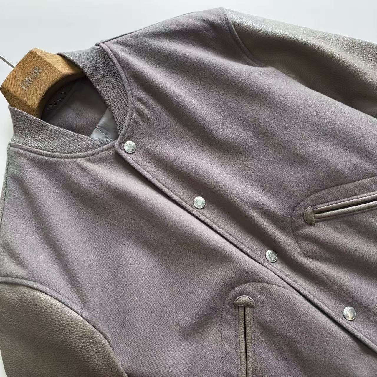 最犯規的當然是那背後「榻榻米針法字母繡」+「牛皮革拼接」!用日本田島機+超啞光錦綸線繡出來,摸起來厚實又低調,袖口下擺還是色織條紋+提花格紋橫機羅紋,彈性滿分又超級精緻,五金更加瘋狂,全開模鋁合金中空橭圓按扣,重量、刻字、光澤全部專櫃級,一扣一開都超療癒~