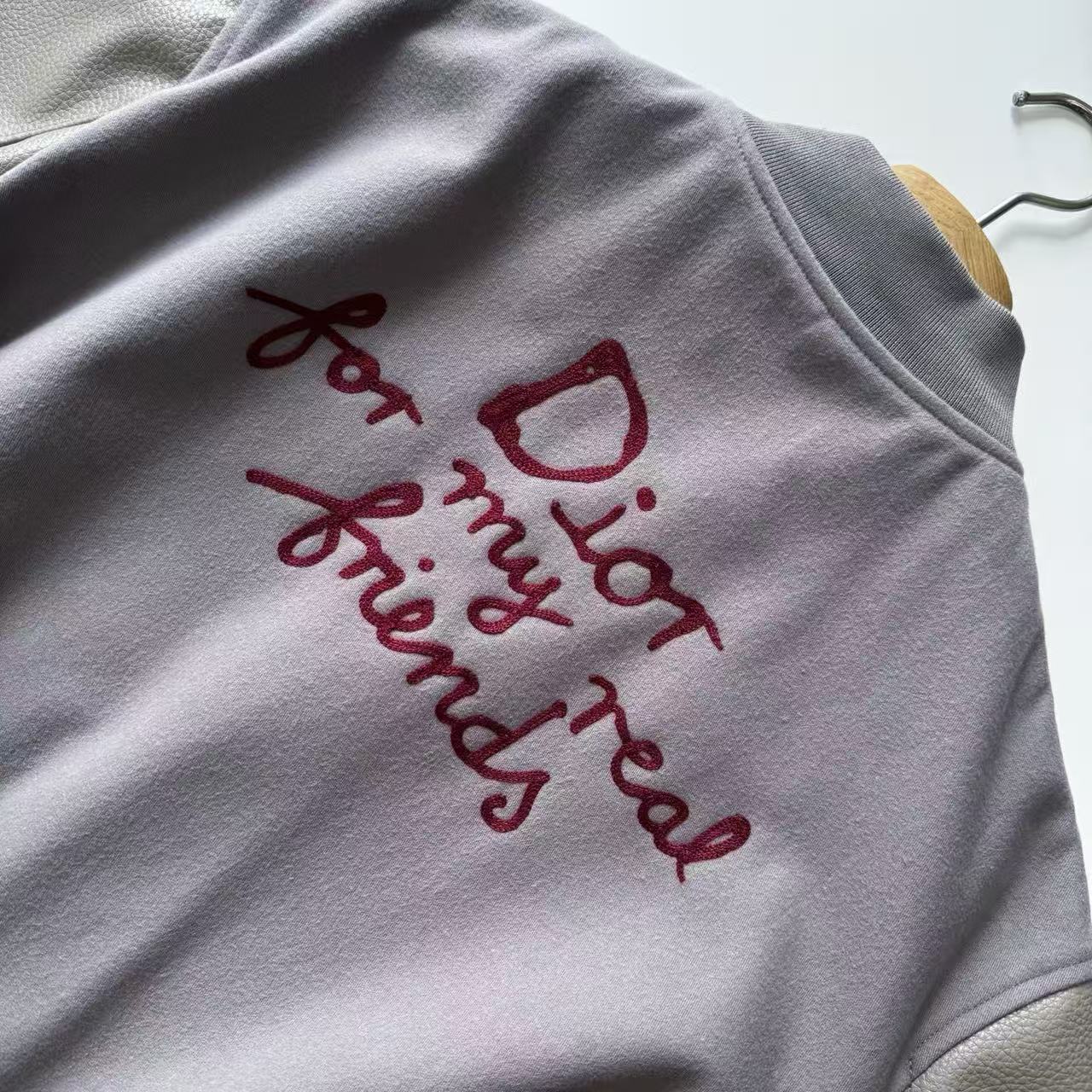 遠看就是經典美式棒球夾克,近看背後那排超大字母是用榻榻米針法+超啞光錦綸線繡出來的,立體到像浮雕,隨便一站就是整個校園最有錢的那個學長,帥到讓人想直接戀愛~