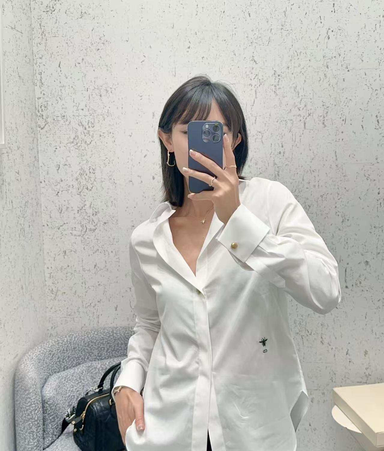 2025秋冬 D家 低胸領金豆白襯衫
