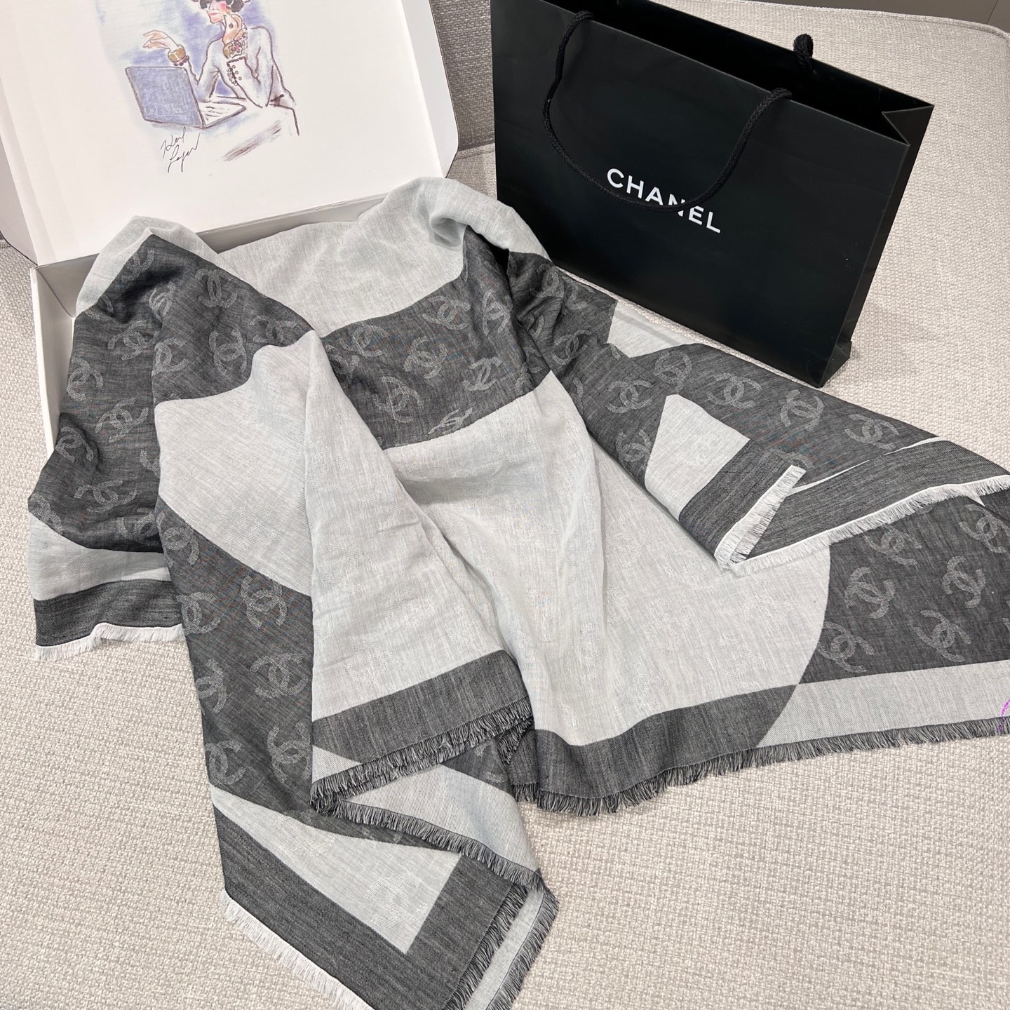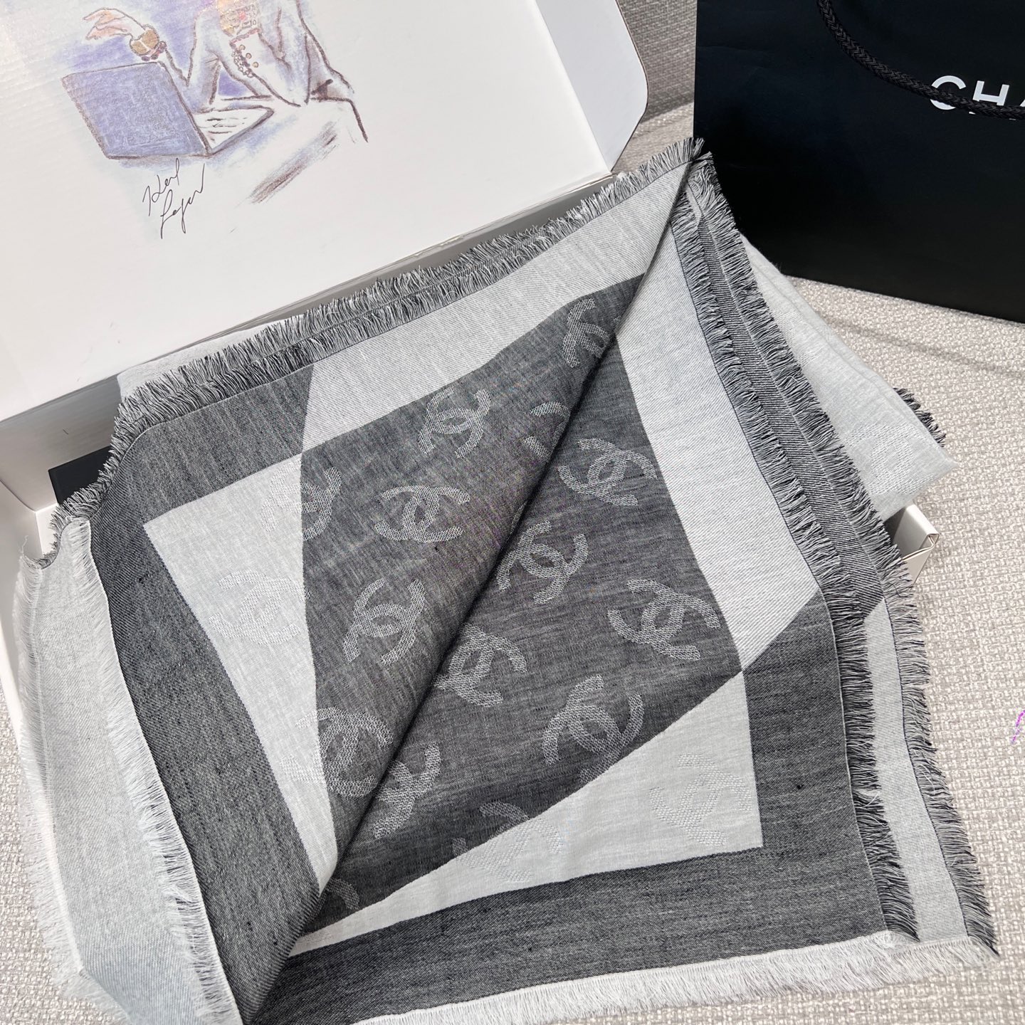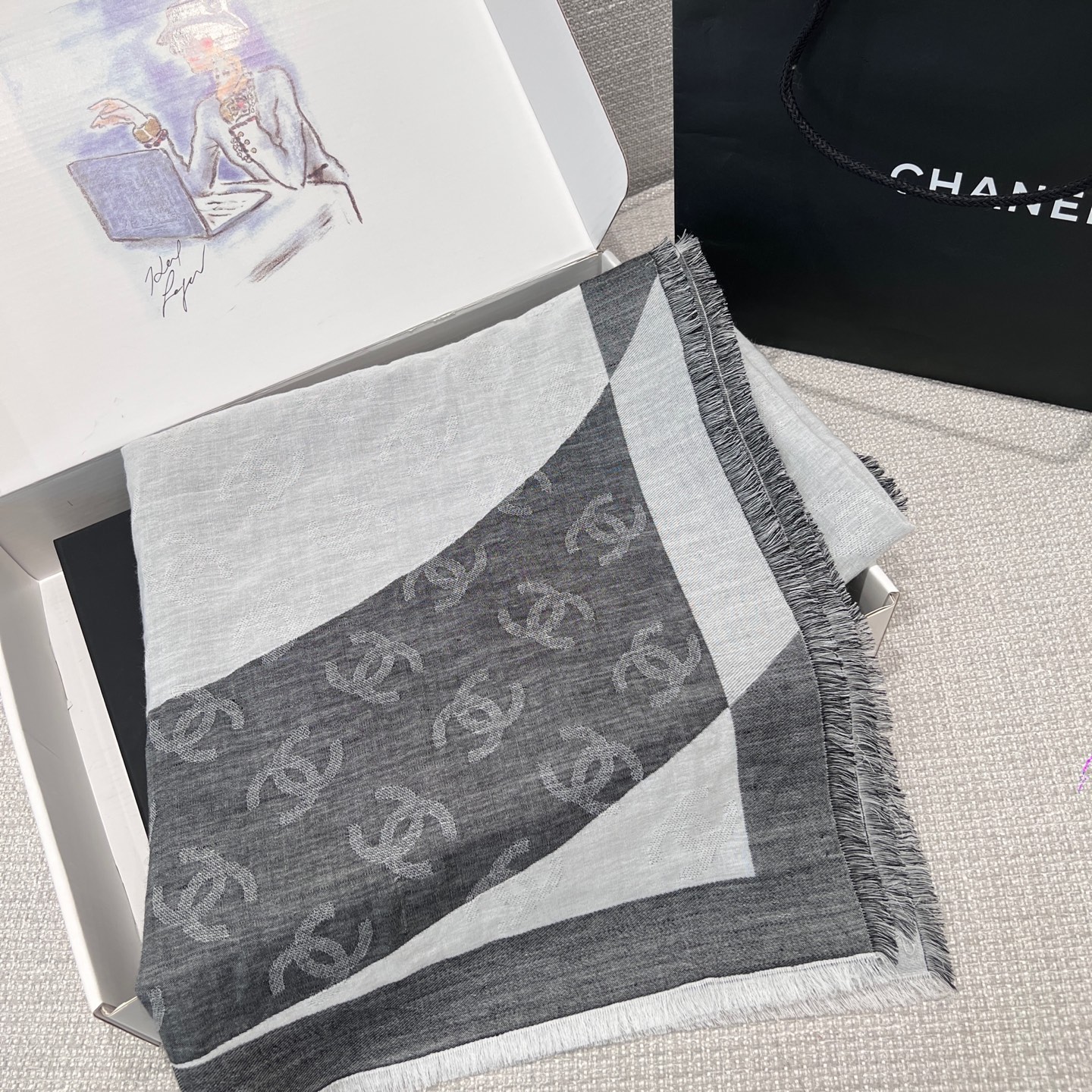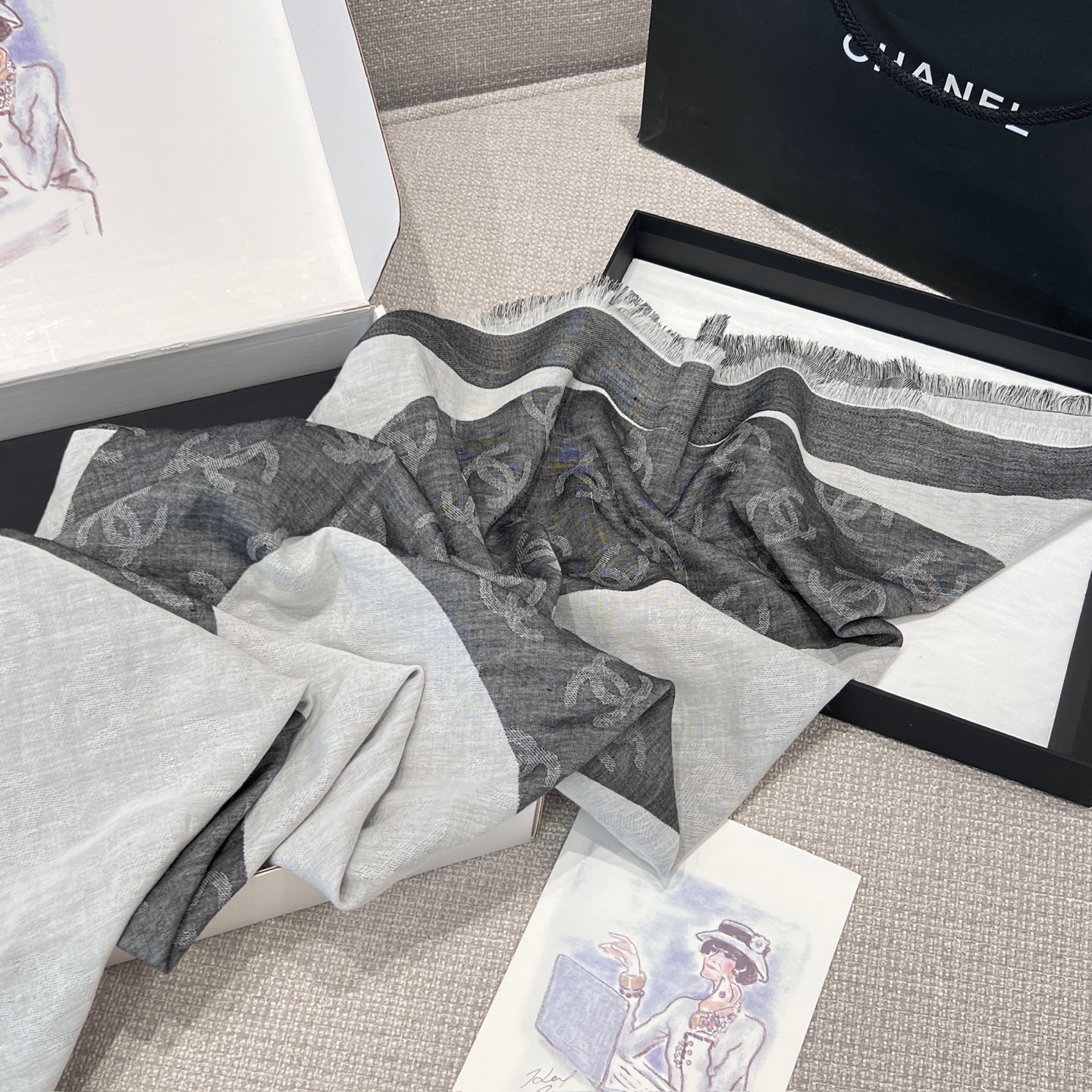 這條披肩真的美得太低調奢華!整體以灰白色調為主軸,乾淨又百搭,不論是冷冽冬日還是微風春秋,都能輕鬆融入日常穿搭中。