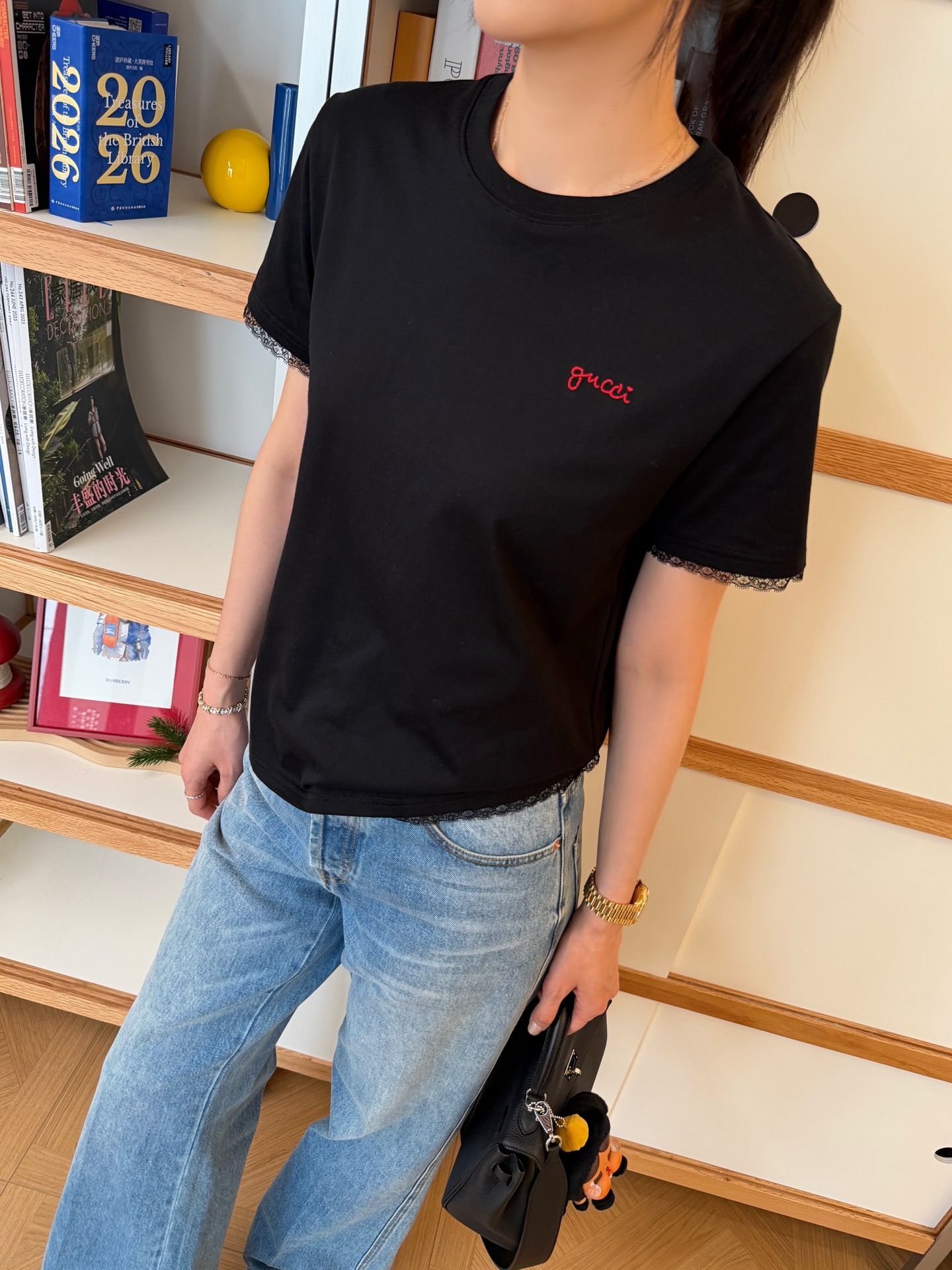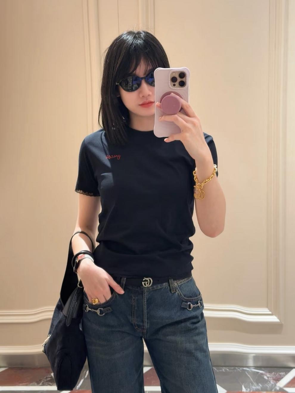 2026春夏新品 G家 拼接蕾絲短袖