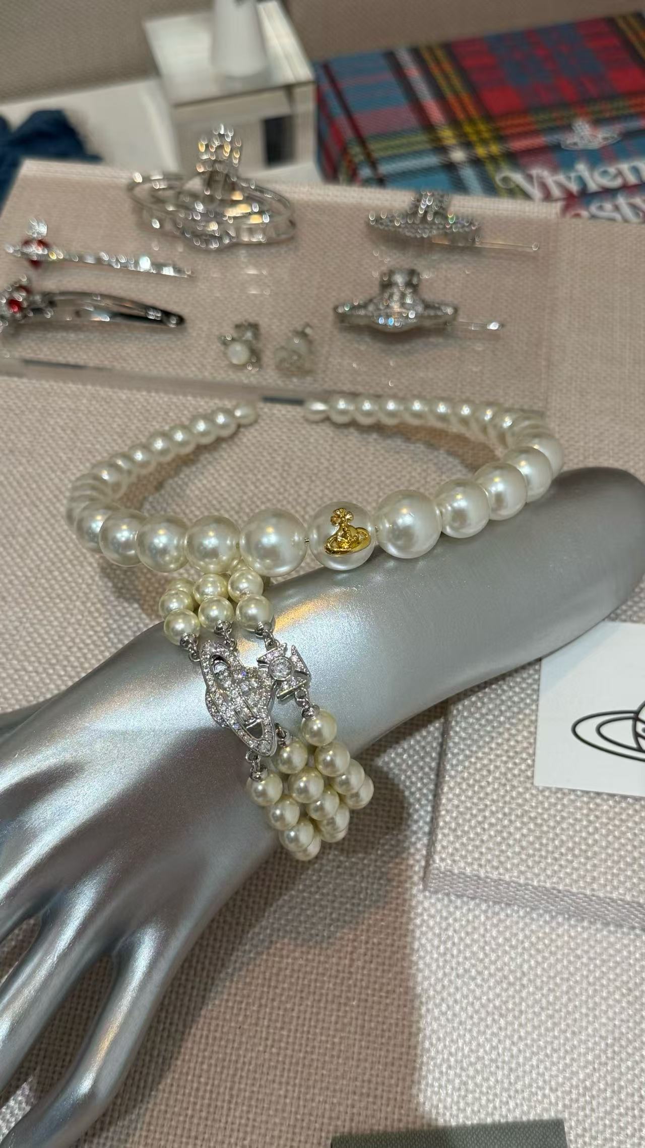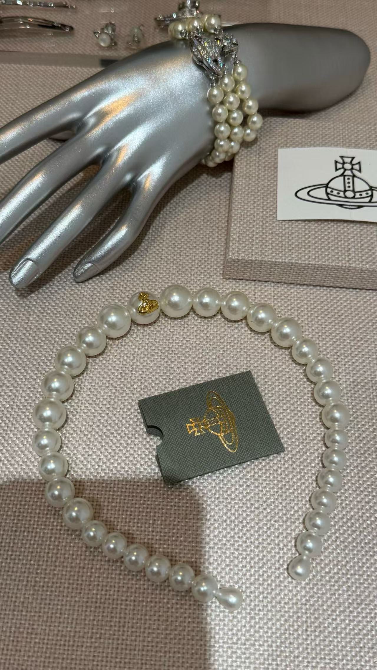 採用一整排大小珍珠搭配標誌性小土星設計,簡約卻不失優雅氣質。