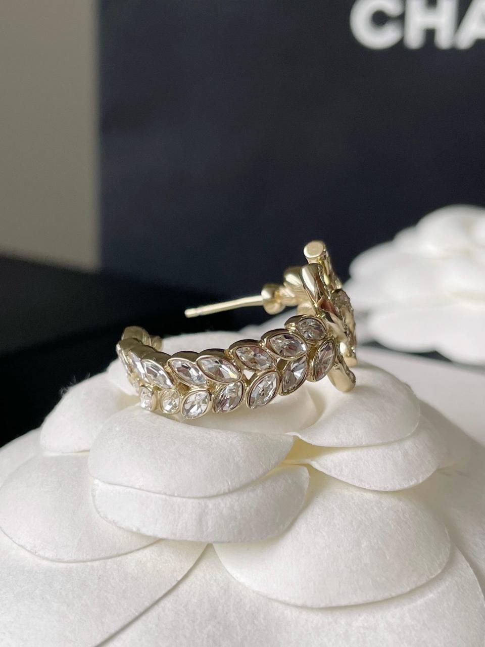 2023春夏 C家淡金色麥穗彎勾滿鑽耳環